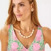 Layered with baroque pearls, golden beads, and a pendant charm, our Paradise Party Necklace makes a bold accent for any outfit.