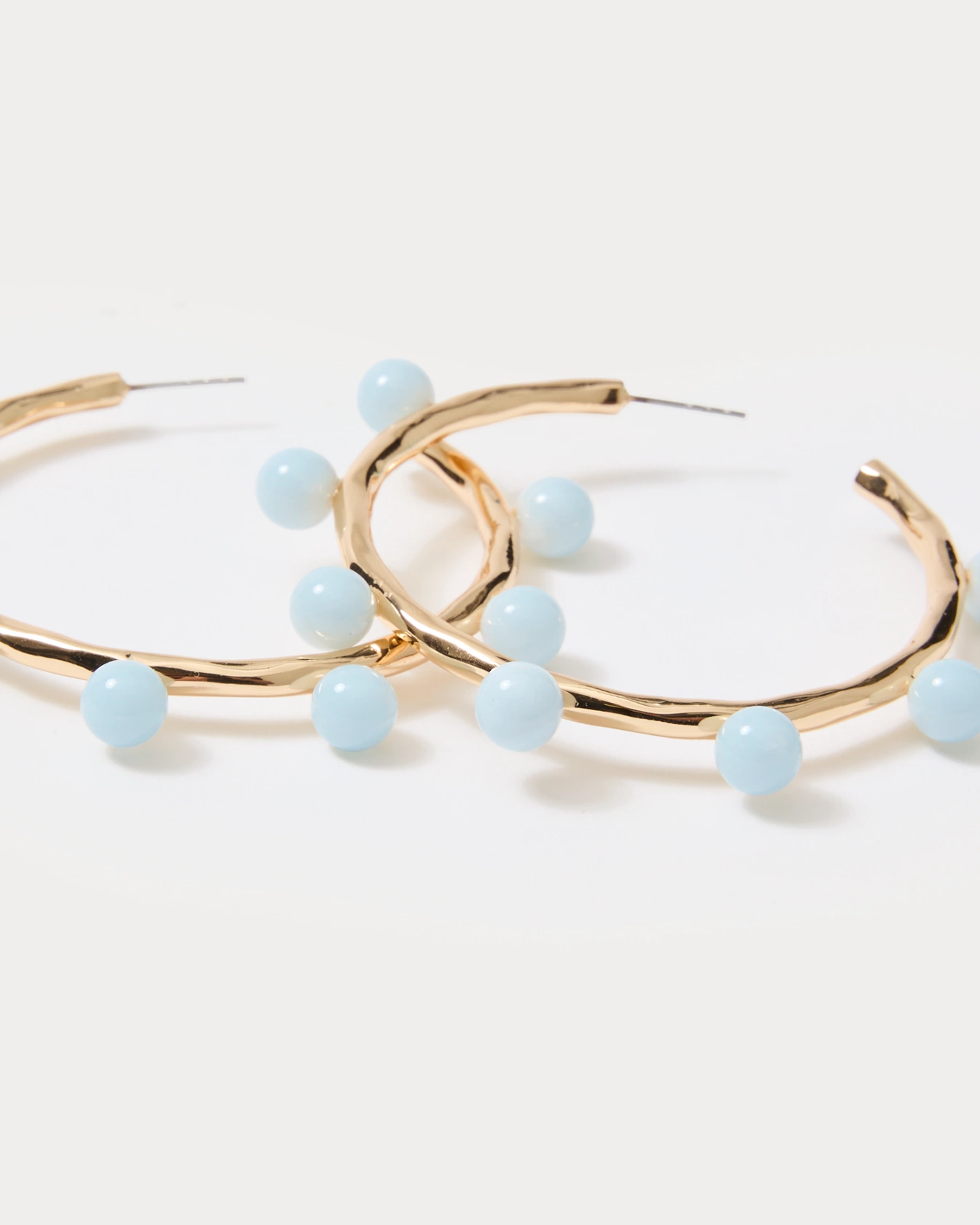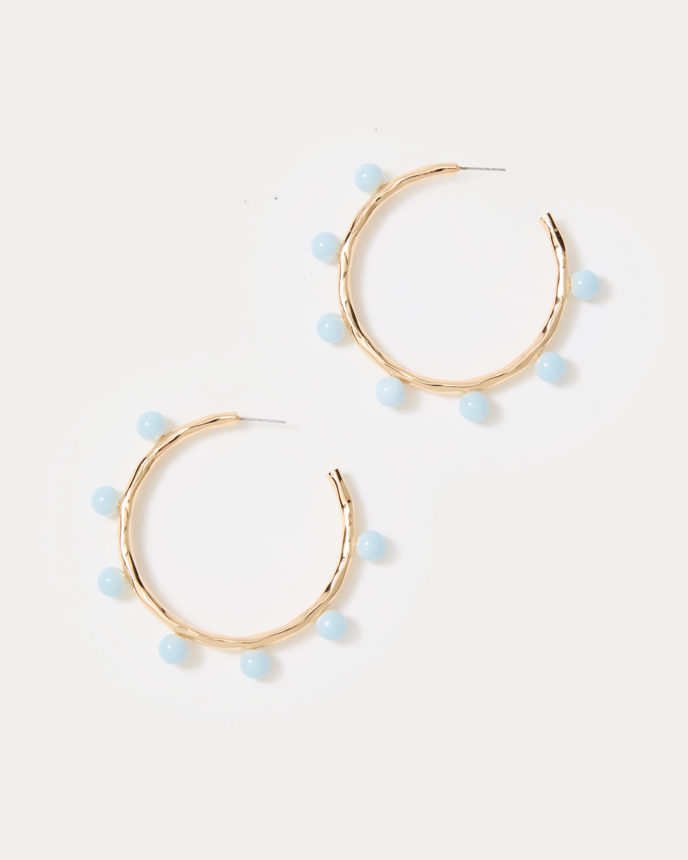 Add a pop of beachy color with our Wave n Sea Hoop Earrings. These textured gold hoops are adorned with colored beads.