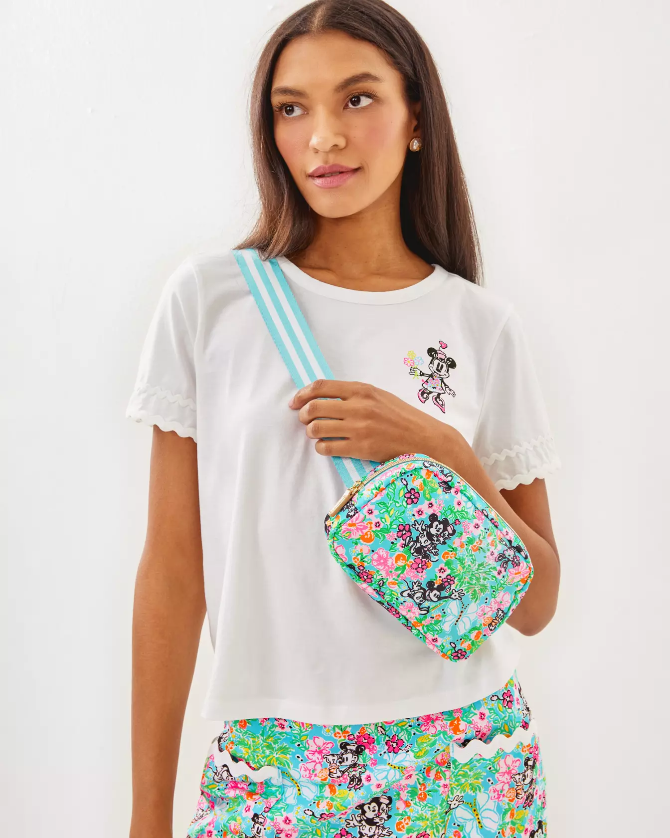 A stylish way to keep your on-the-go essentials handy, the Jeanie Belt Bag features the Lilly logo, a zip closure, and an adjustable strap. In this fresh-squeezed design, Mickey and Minnie visit a fantastical orange grove to tell the “zest” Lilly story.