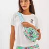 - Belt bag with a zip closure and a striped webbing strap with an adjustable buckle.