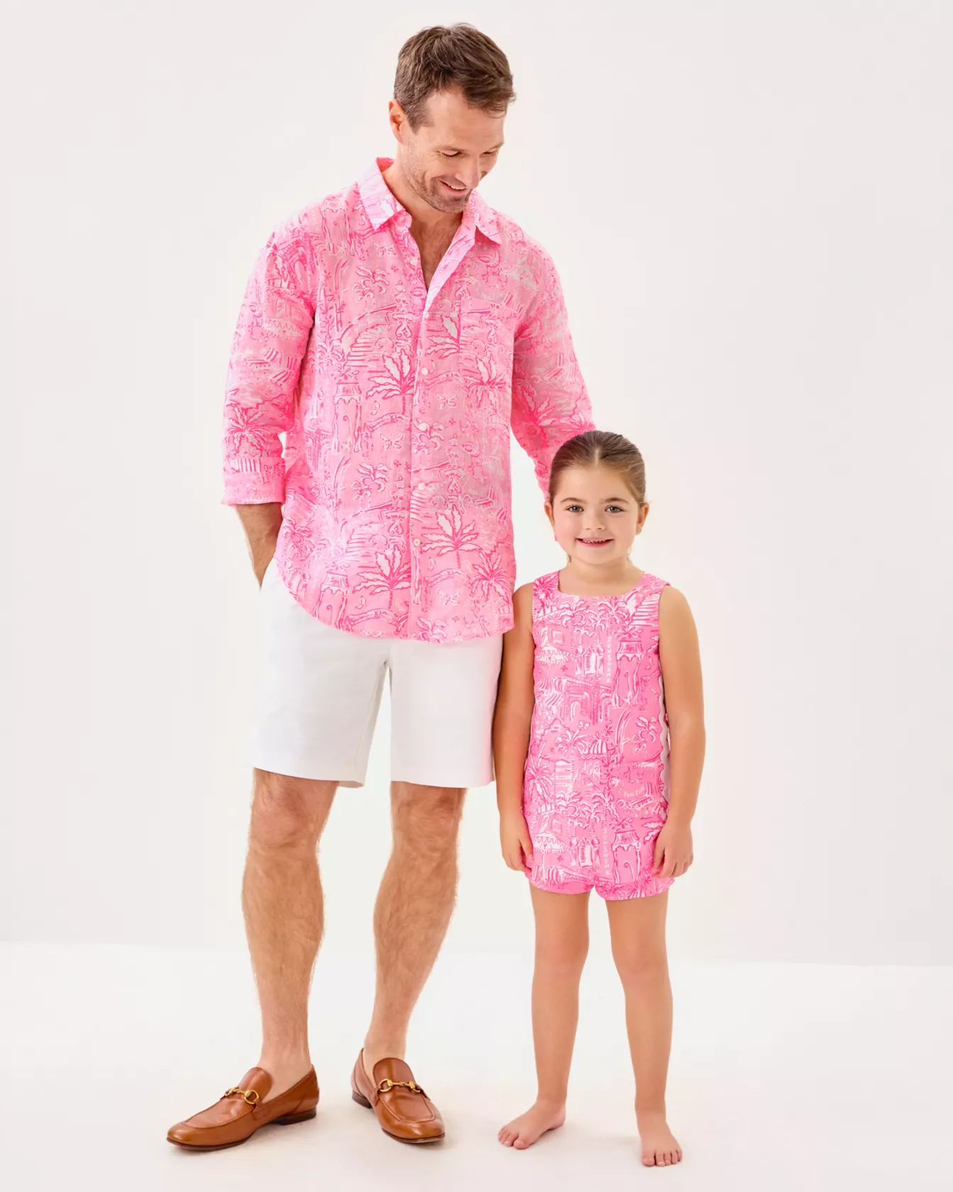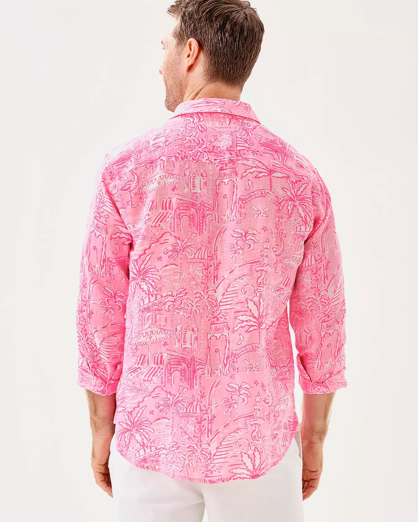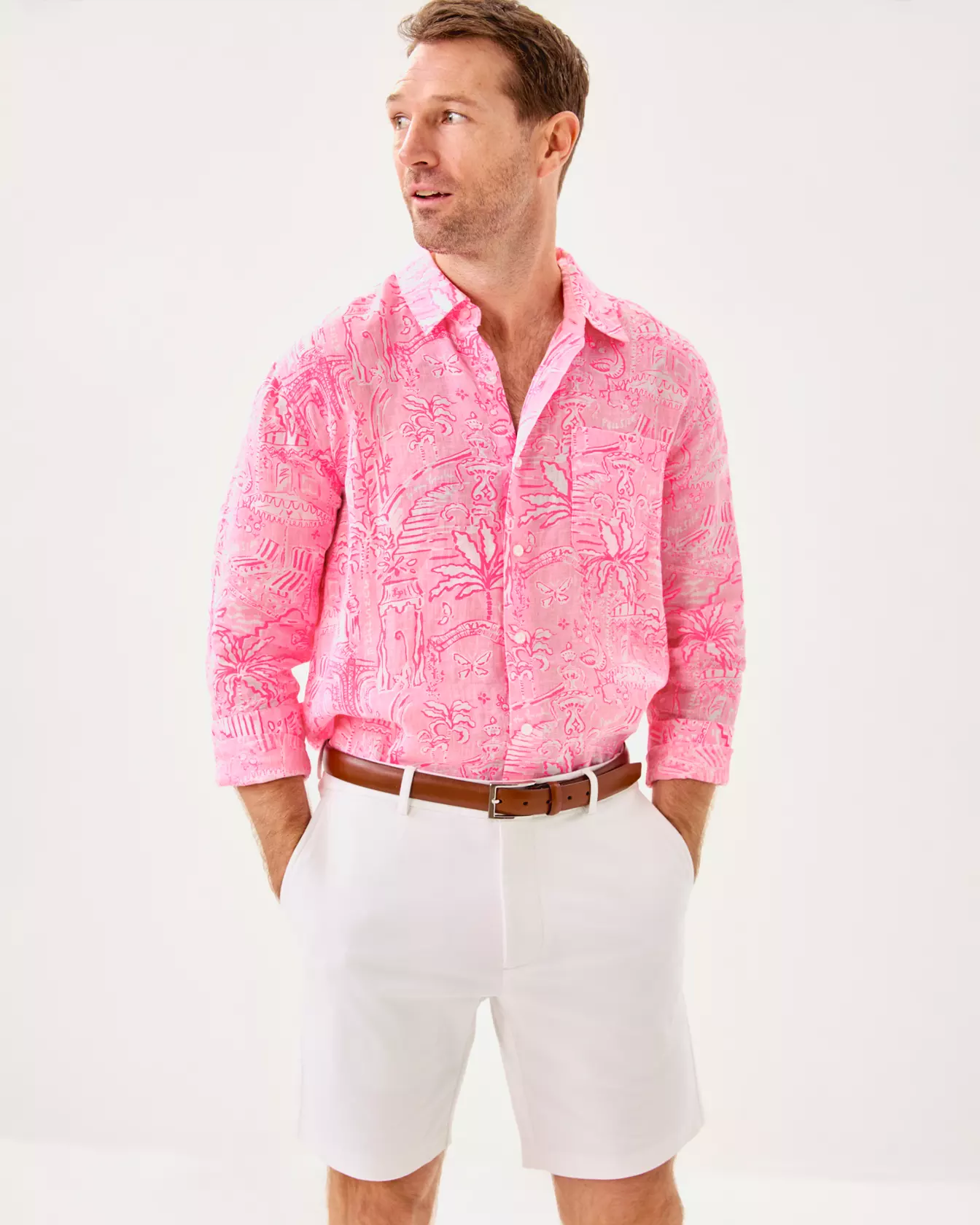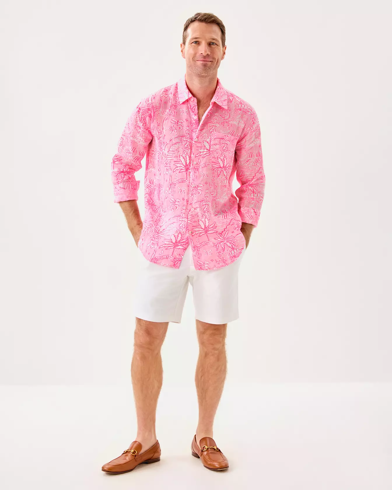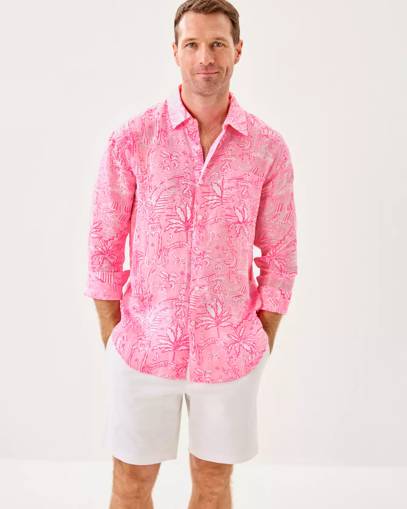 Lilly Pulitzer Men’s Stuff Addison Shirt | Conch Shell Pink Pennys Playground