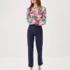 - High rise, ankle-length pant with a straight fit.