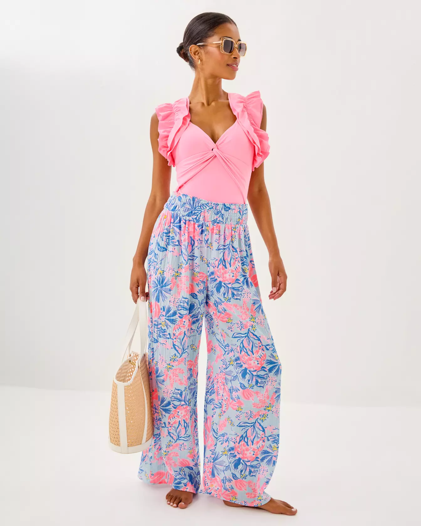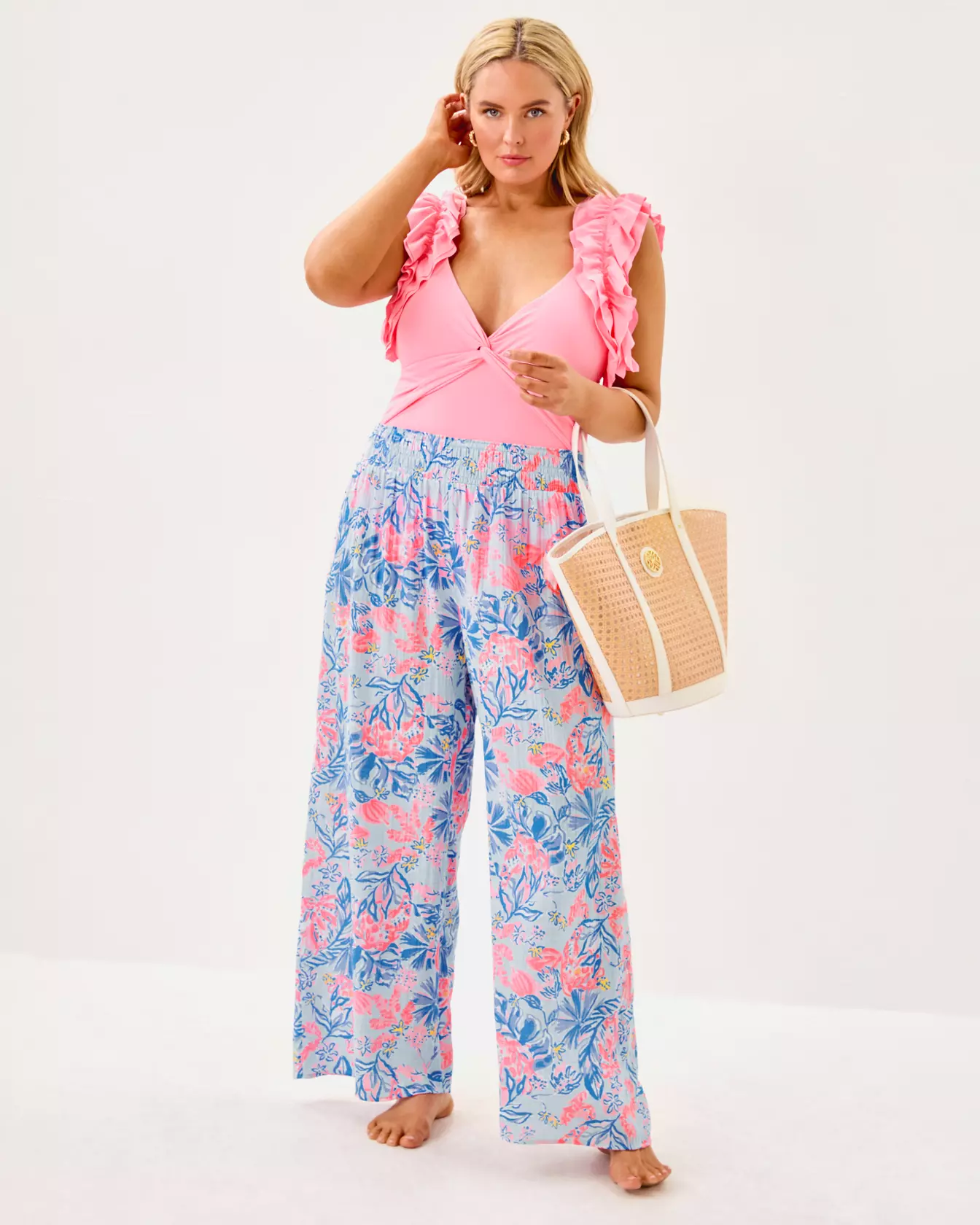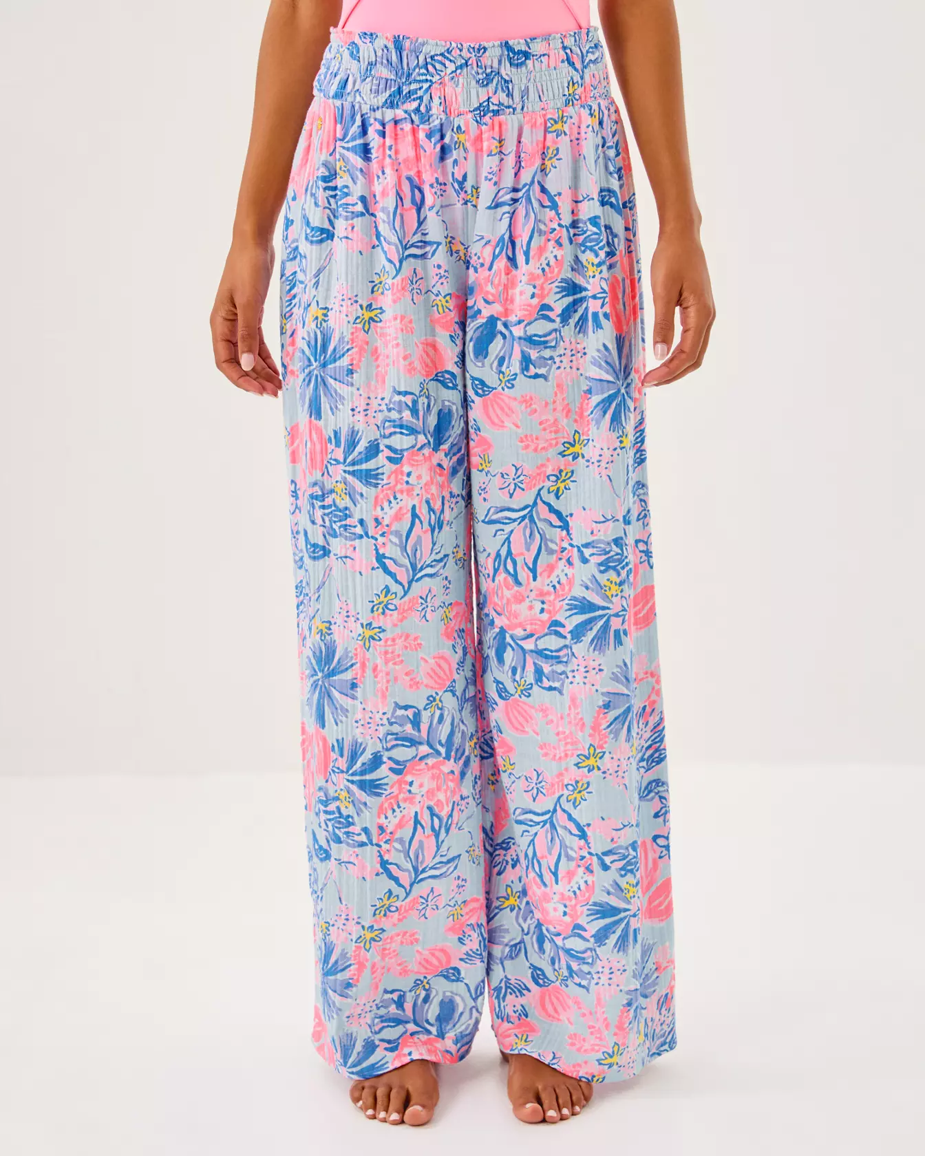 Upgrade your beachwear look in the Enzo Cotton Cover-Up Pant. These high-rise, pull-on pants feature a comfortable smocked waist, making them the perfect choice for both style and ease during your sunny escapes.