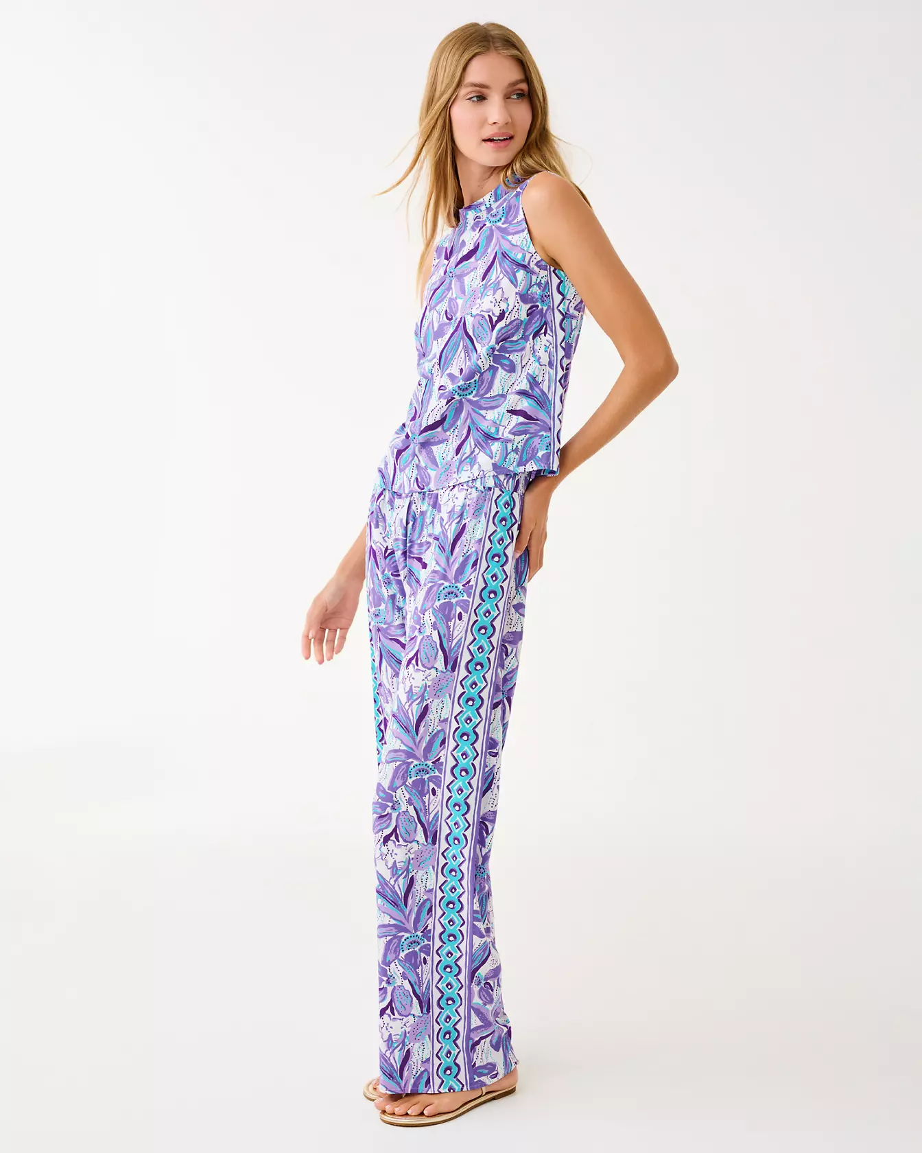 Lilly Pulitzer Women’s Anya Top | Tropicalia Purple Elephant In The Bloom Engineered Bottom