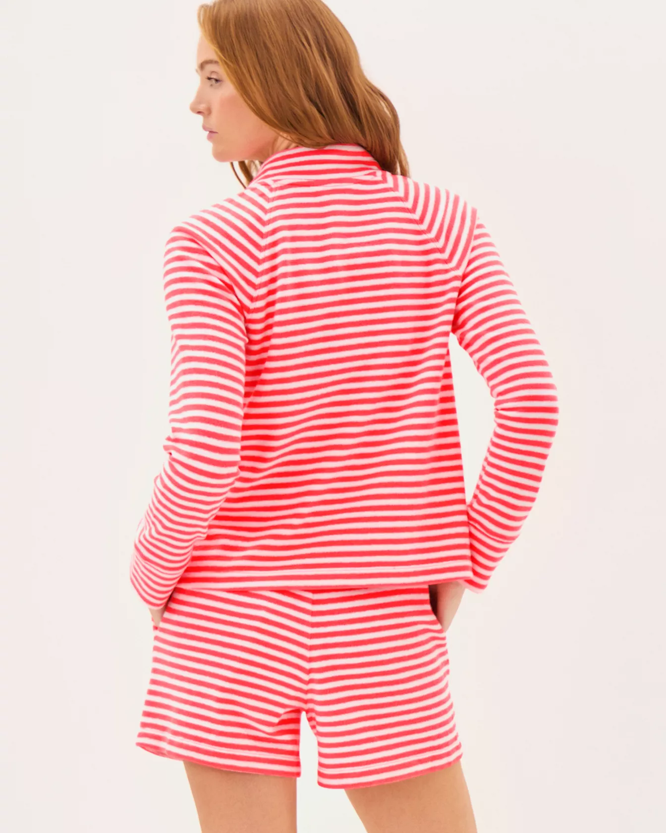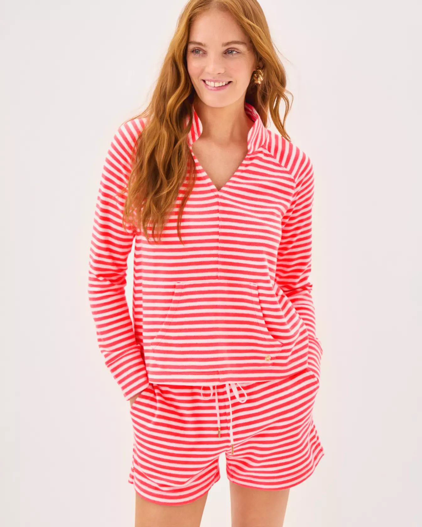 In machine washable terry, our easy fit Cassi Popover makes the perfect layer for cool mornings and breezy days.