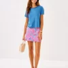- Mid-rise, straight fit skort with front slant pockets and back welt pockets.