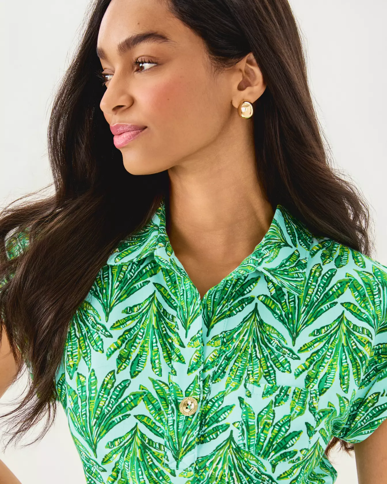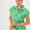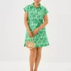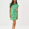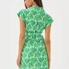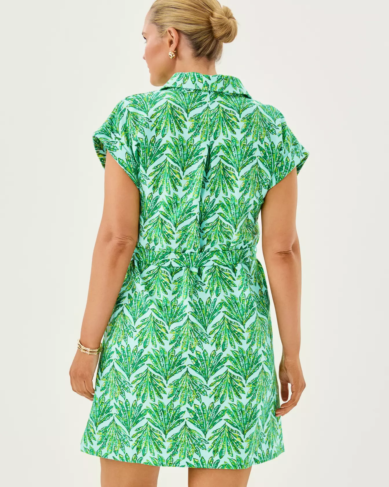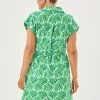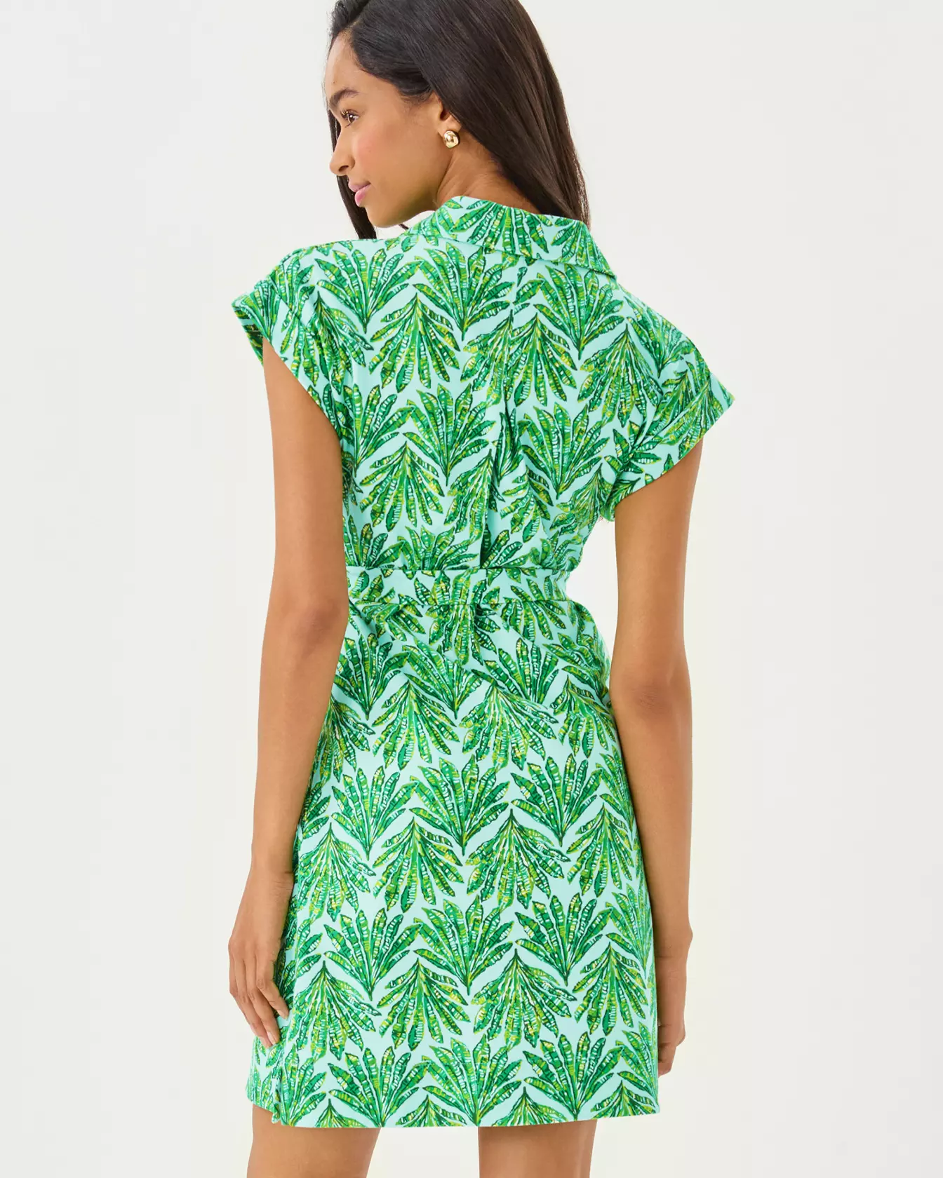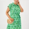 - Easy fit, short sleeve, popover dress with a collar, side vents, and a separate self sash.