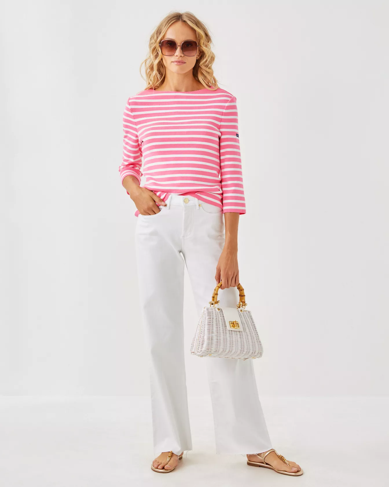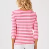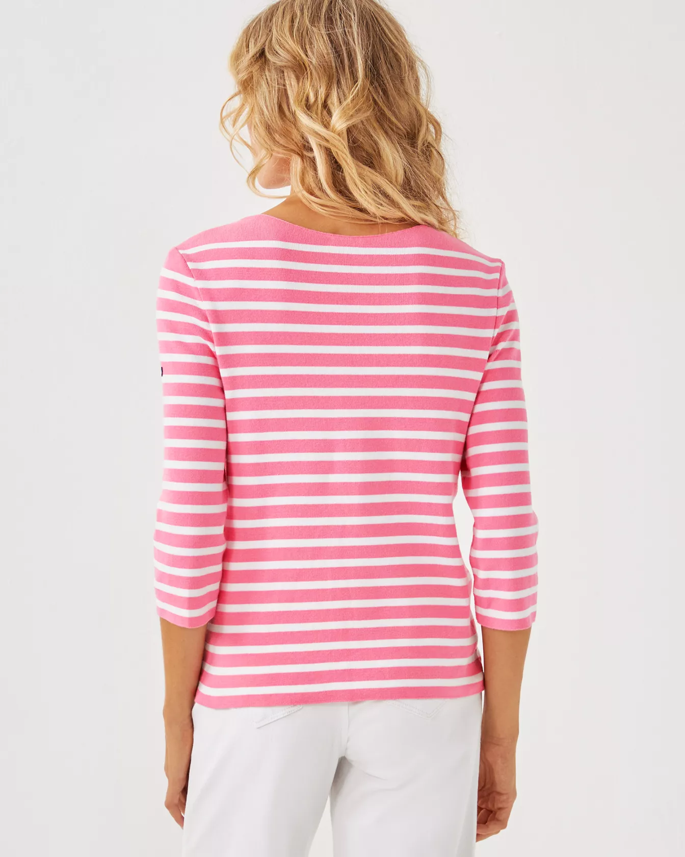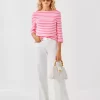 Fresh, fun, and timeless, the Lilly x Saint James collection invites you to shine bright and sail away. Each piece, including the nautical stripe Voissey Sweater, is made in France with impeccable craftsmanship.