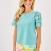 - Straight fit top with a banded crew neckline and unlined eyelet sleeves.