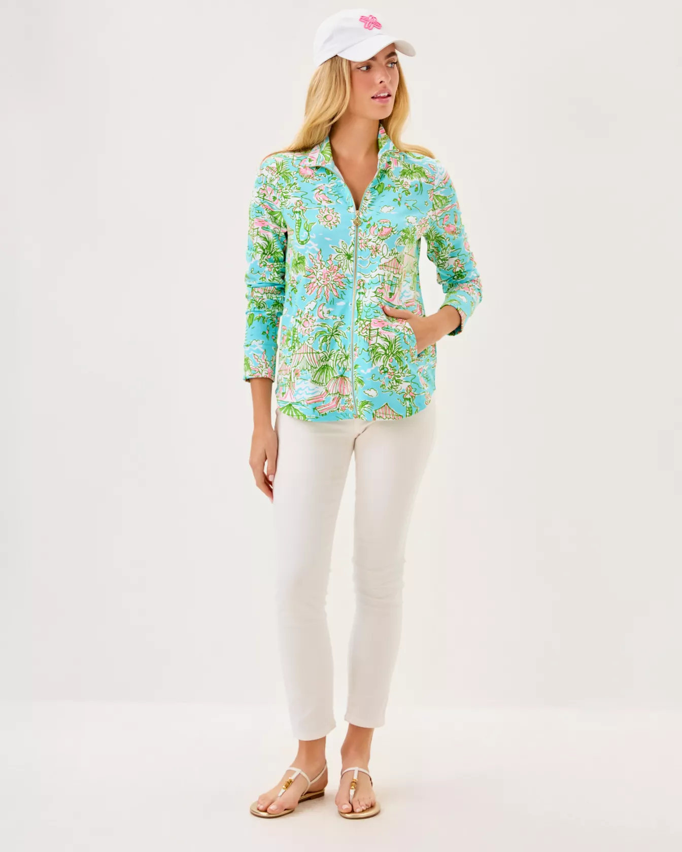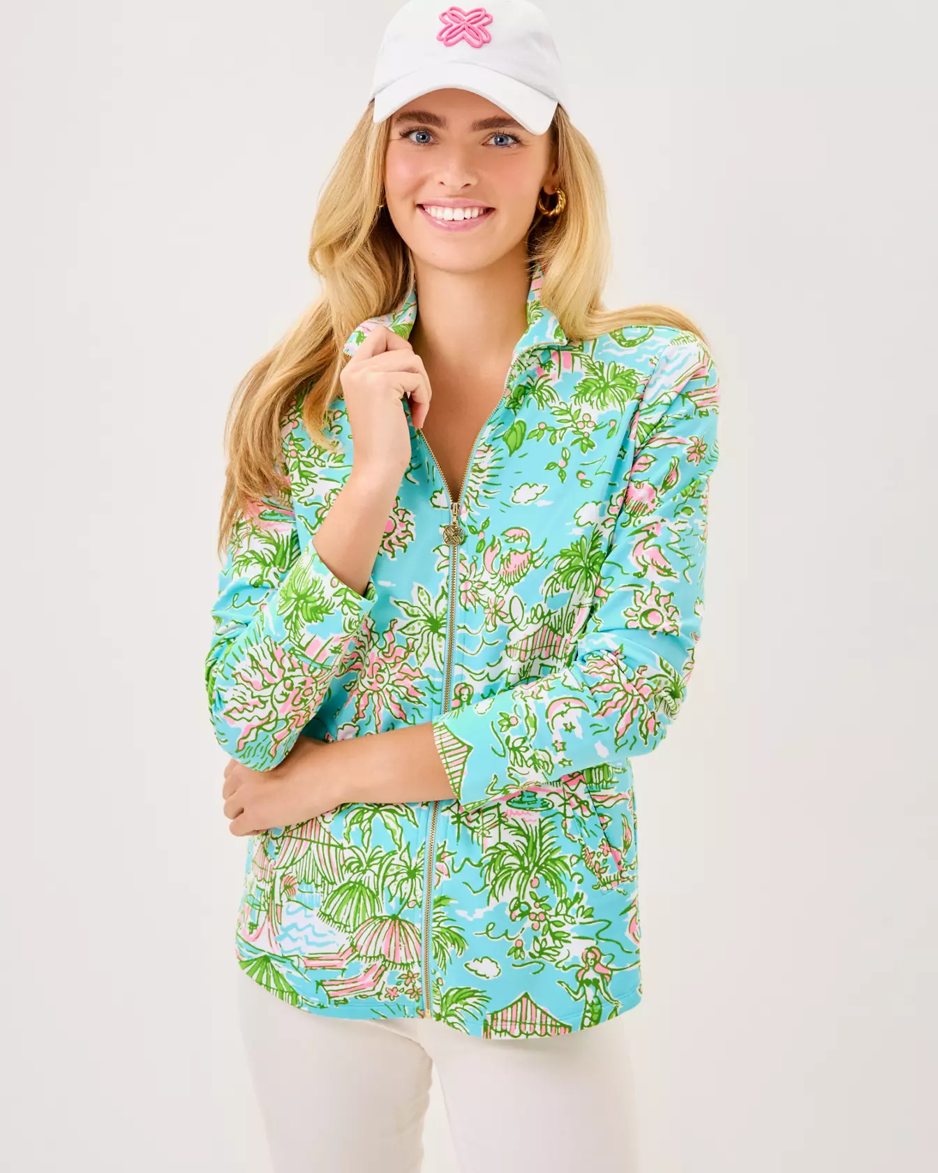 Made from Luxe Terry fabric, our Leona Zip-Up Jacket offers UPF 50+ sun protection and exceptional softness. Brightly styled in an eye-catching Lilly print, it’s the perfect balance of sporty and feminine.