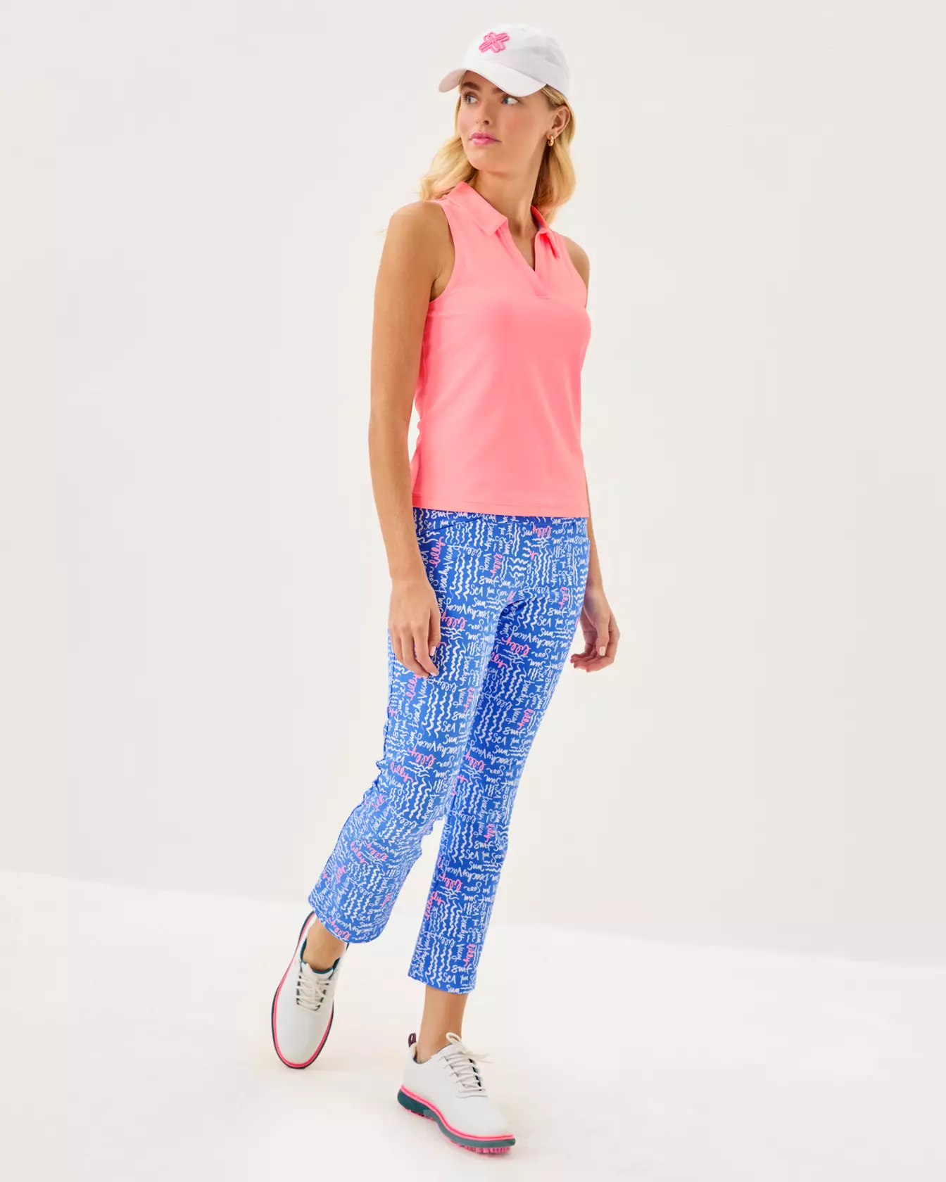 - UPF 50+ Luxletic® pull-on golf pant with front and back pockets. Moisture wicking.