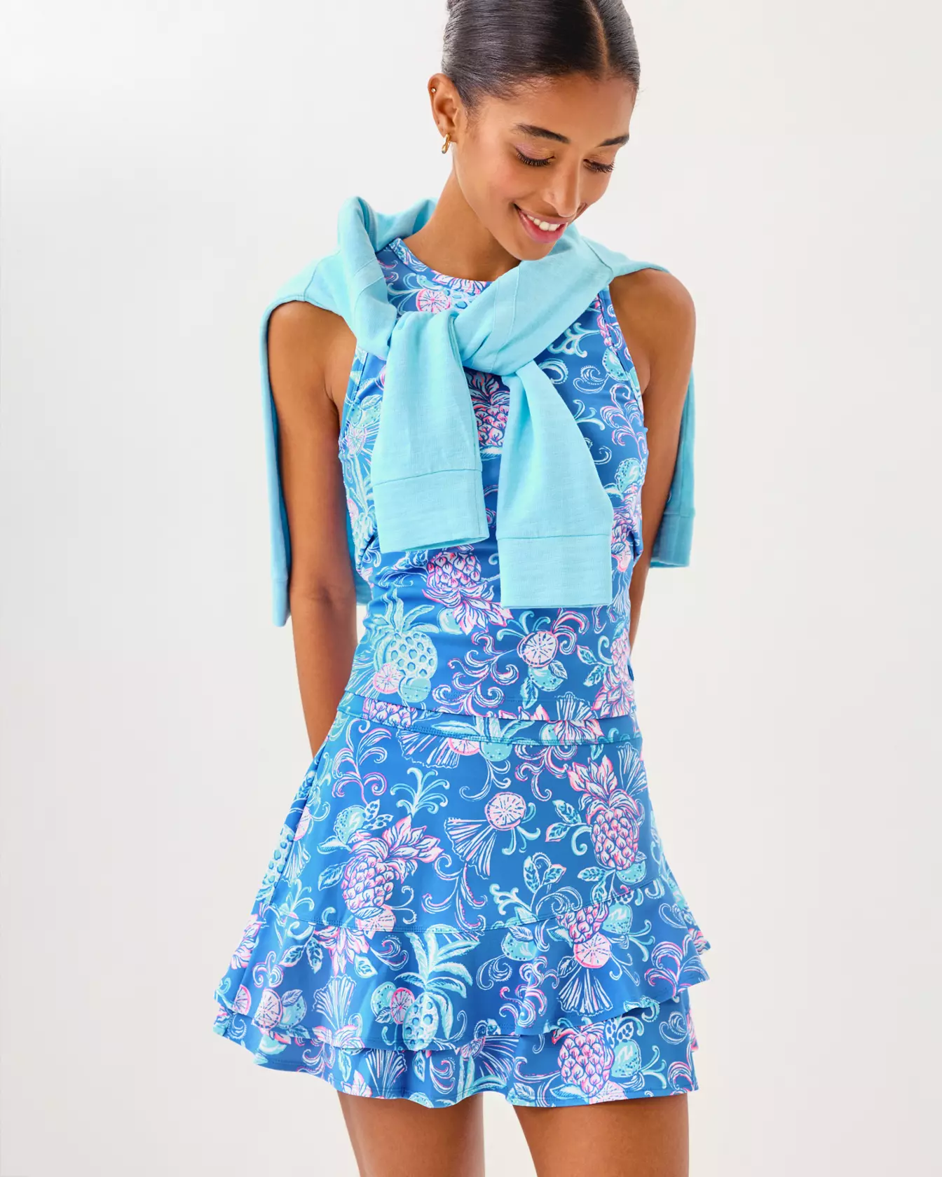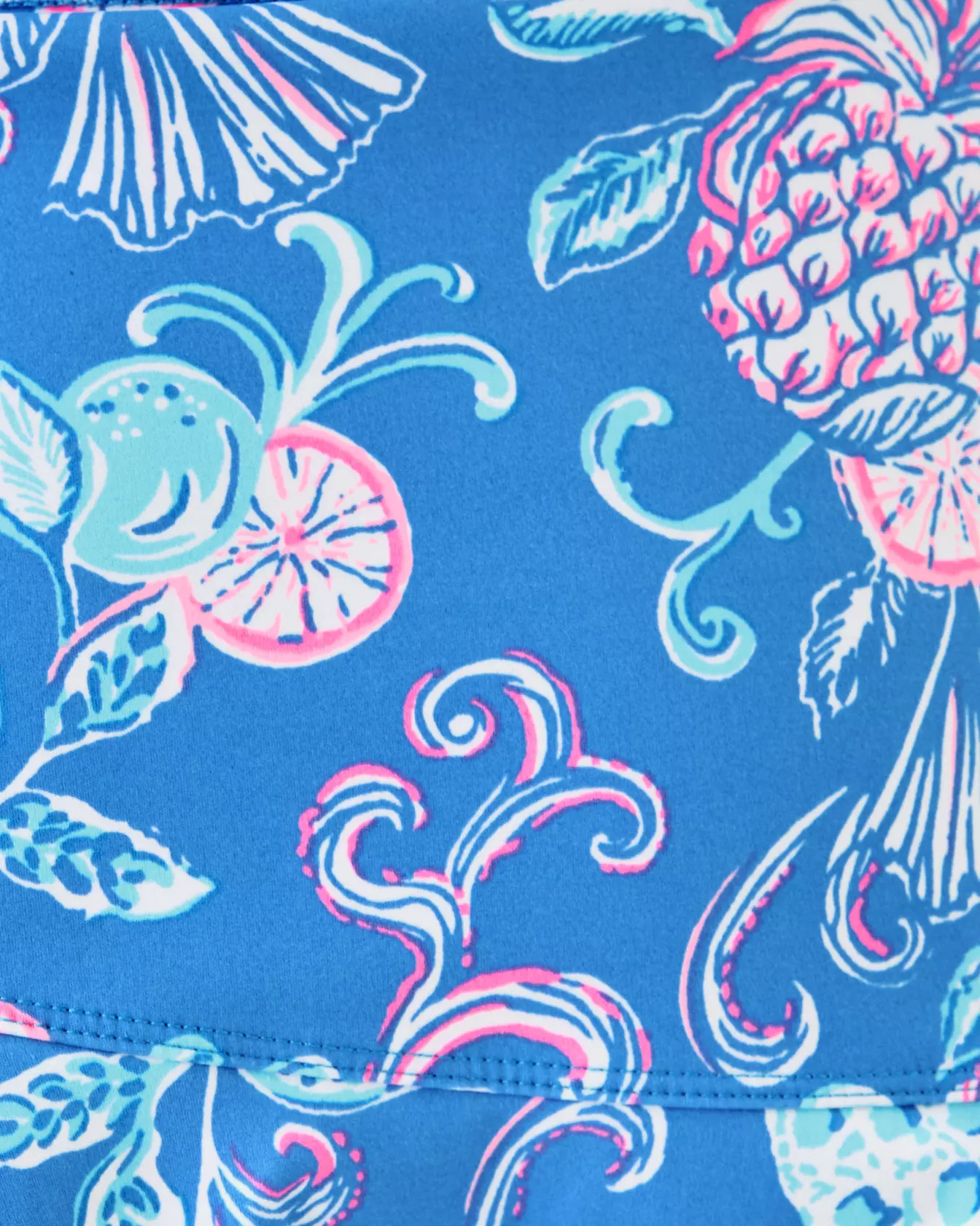 - UPF 50+ Luxletic® high rise active skort with a pocket on the undershorts. Made from moisture wicking, partially recycled material.